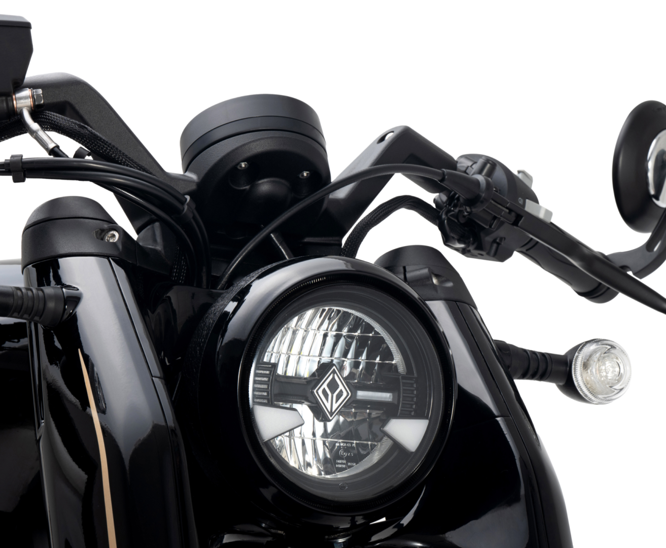 Witness a beautiful blend of classic cruiser aesthetics and outstanding innovations in the Napoleon Bob 500 LED headlight. This timeless round optic, upgraded with LED technology and unprecedented design finishes, was captured perfectly in our photo, showcasing how Benda combines the past and the future in one revolutionary motorcycle.